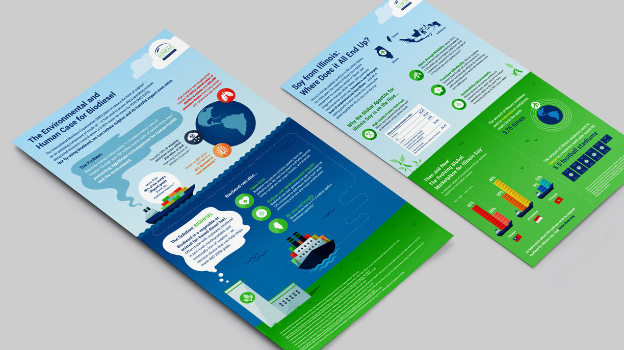 Illinois is the top soybean producer in the United States. The Illinois Soybean Association promotes eco-friendly practices by advocating for non-toxic, soybean-based biodiesel and offering soy as a protein alternative to meat. Design / Illustration